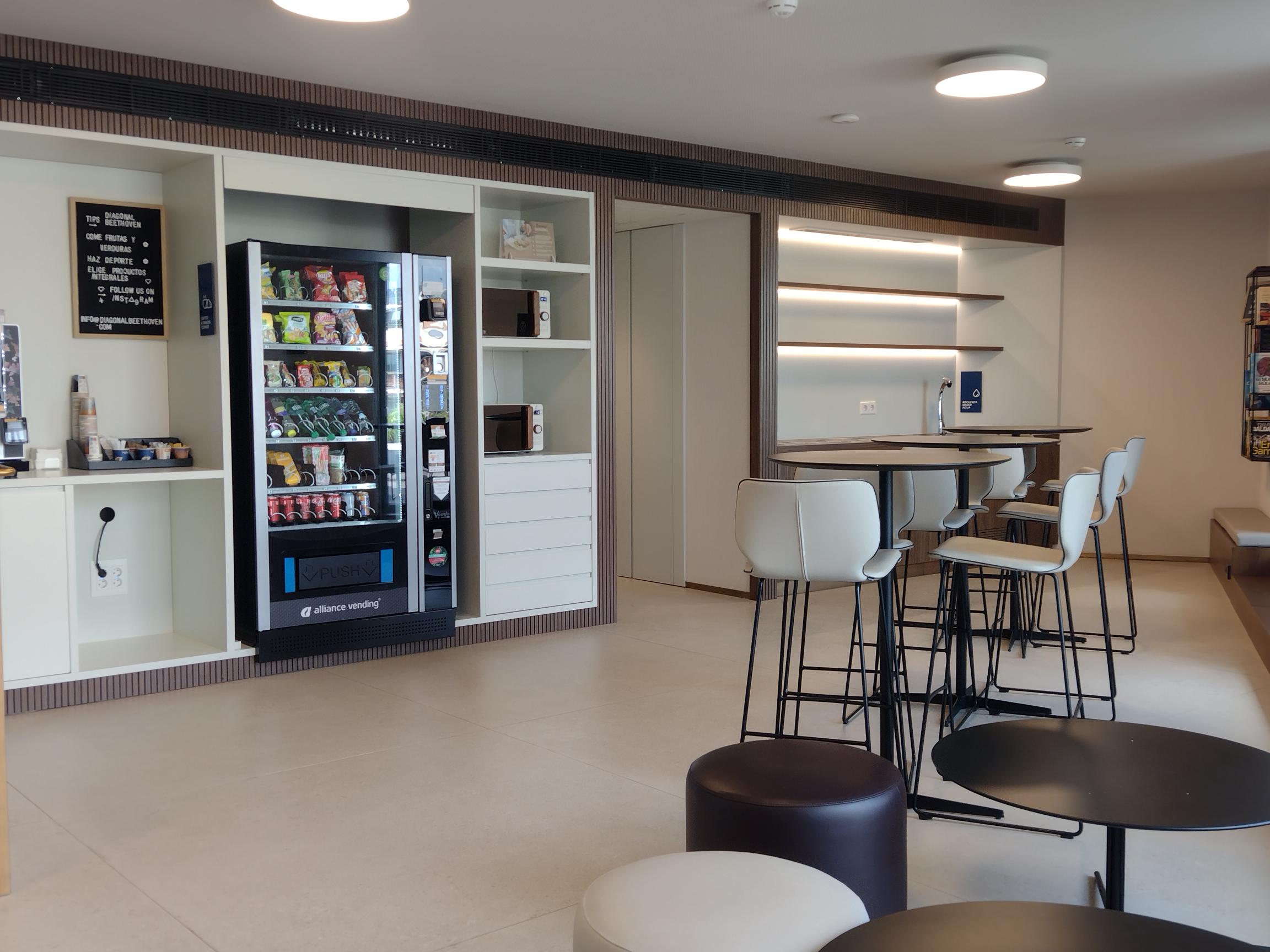 With vending options and seating, perfect for coffee breaks, brief meetings, or flexible working.
