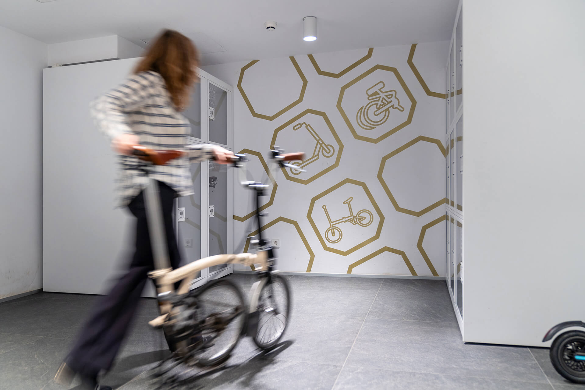 Smart lockers for storing and charging electric scooters and bicycles.