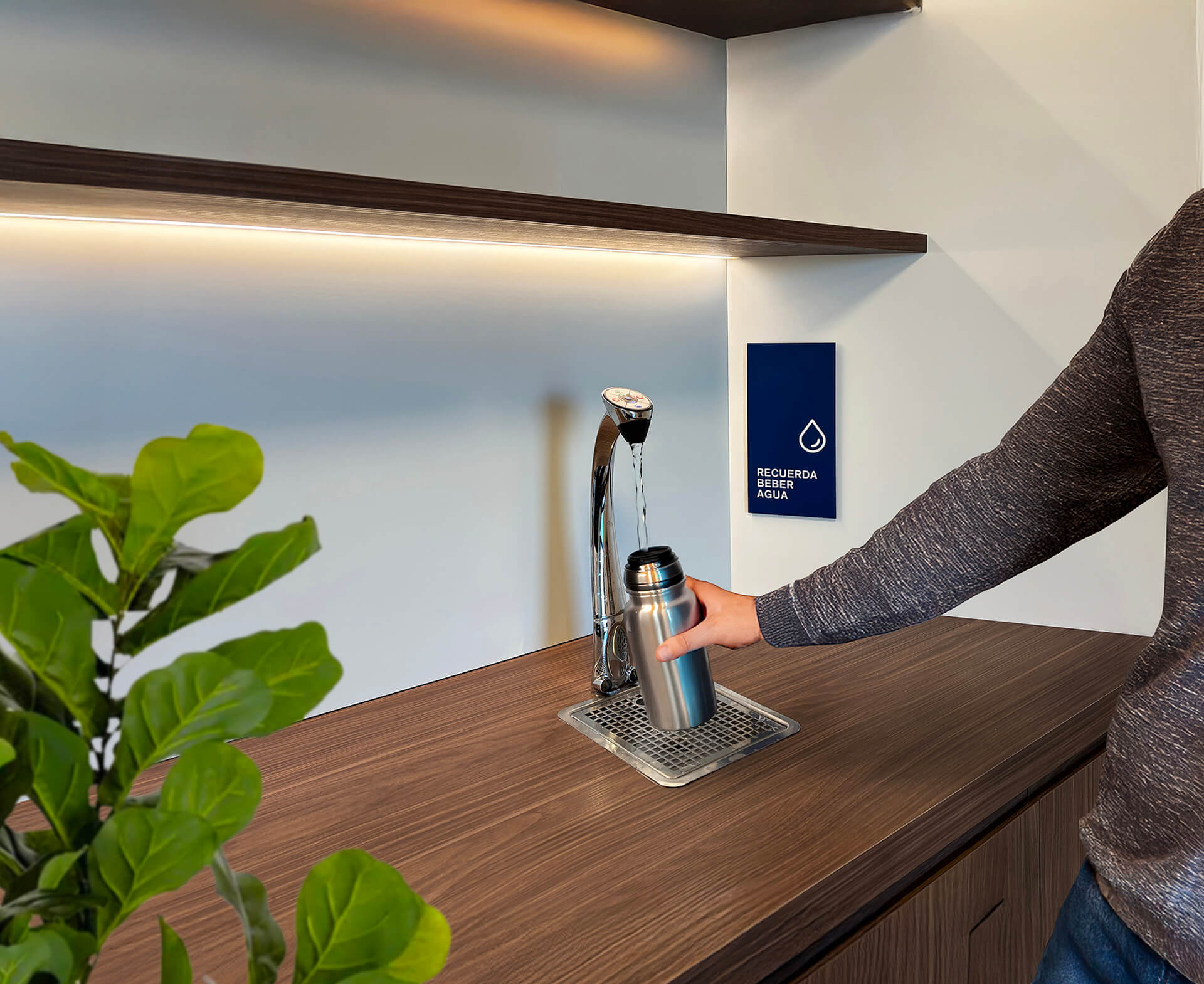 Staying well-hydrated supports concentration and well-being throughout the workday. The building offers a free water fountain (hot, cold, and sparkling) available to all tenants.